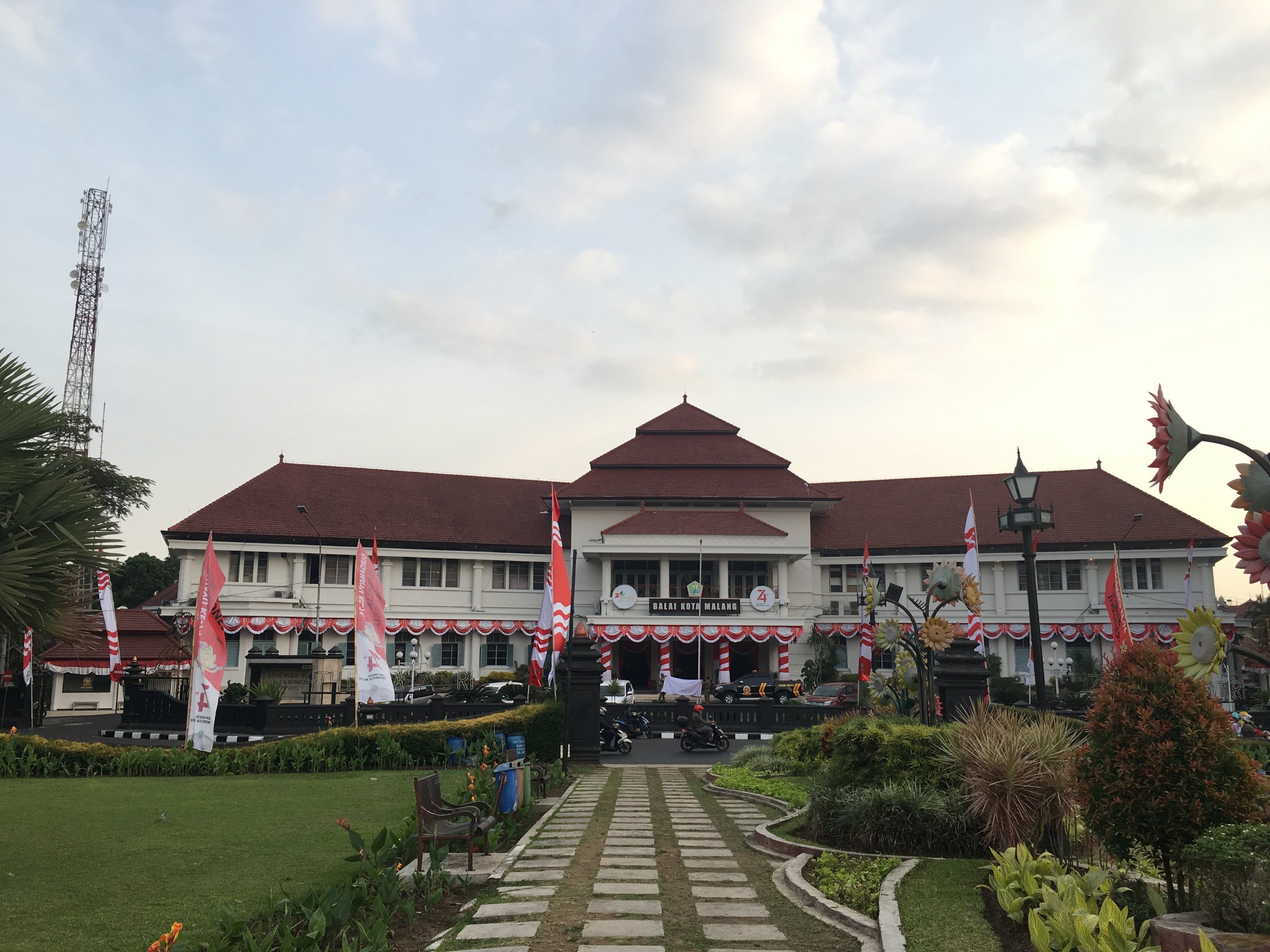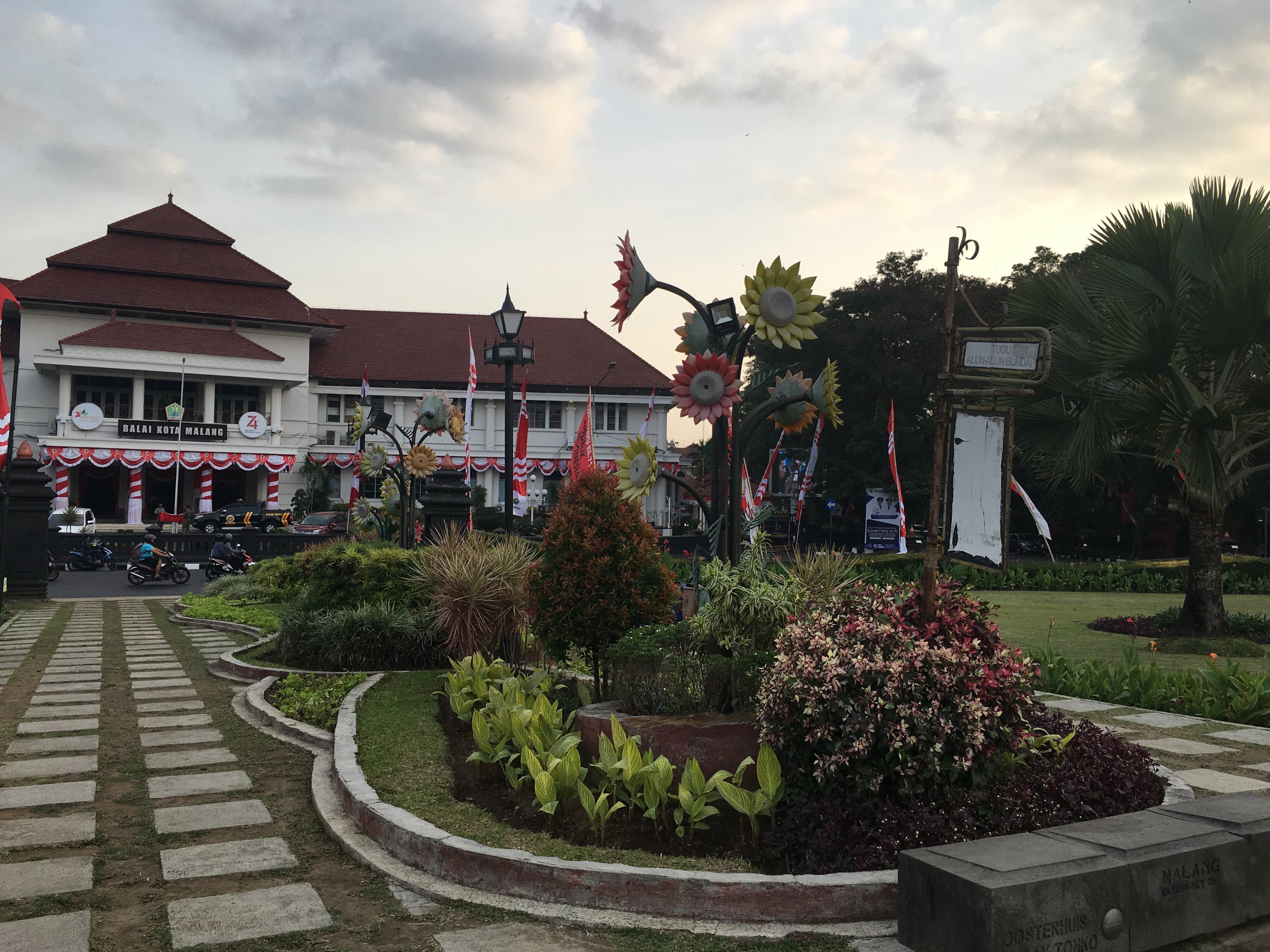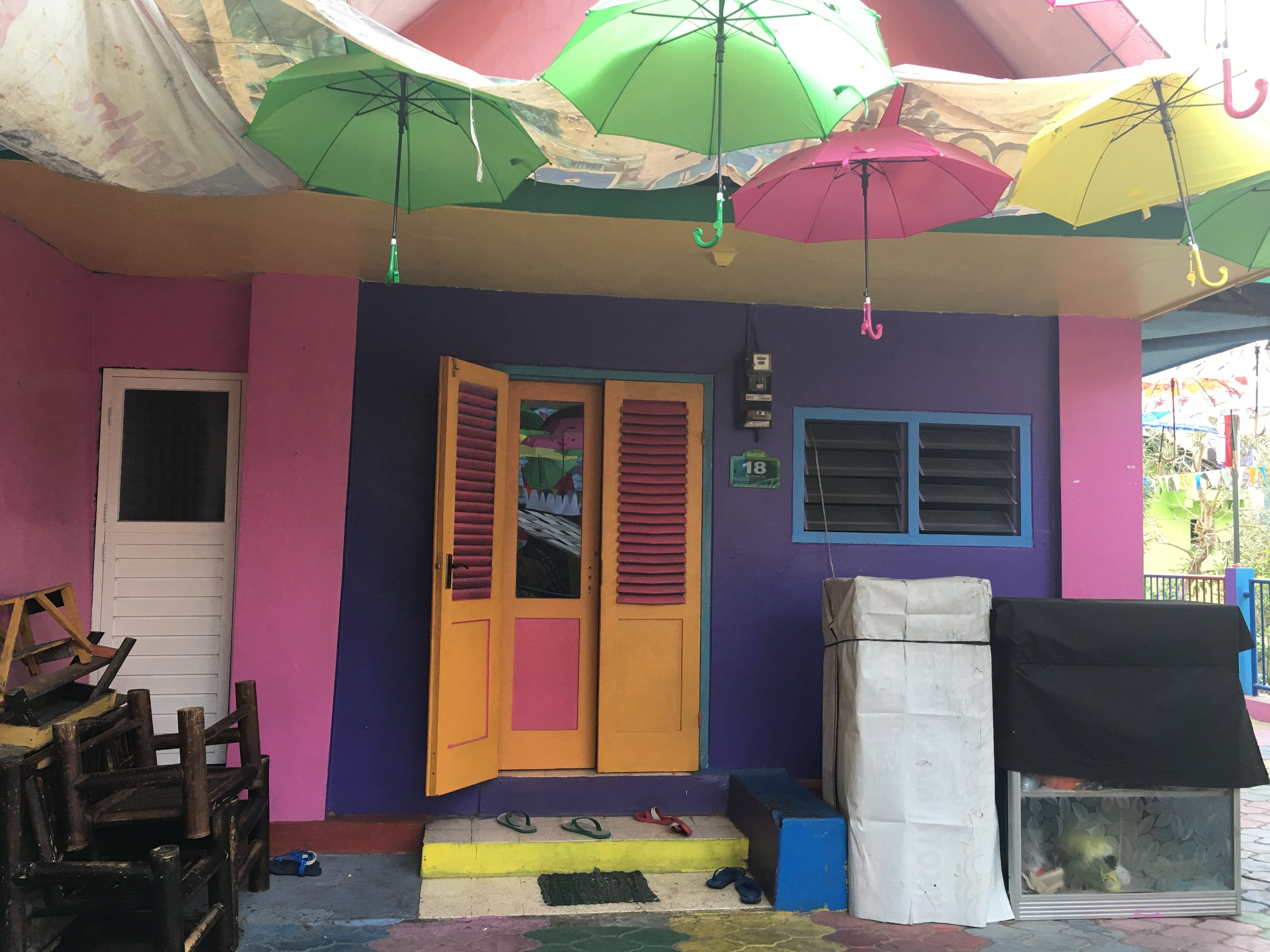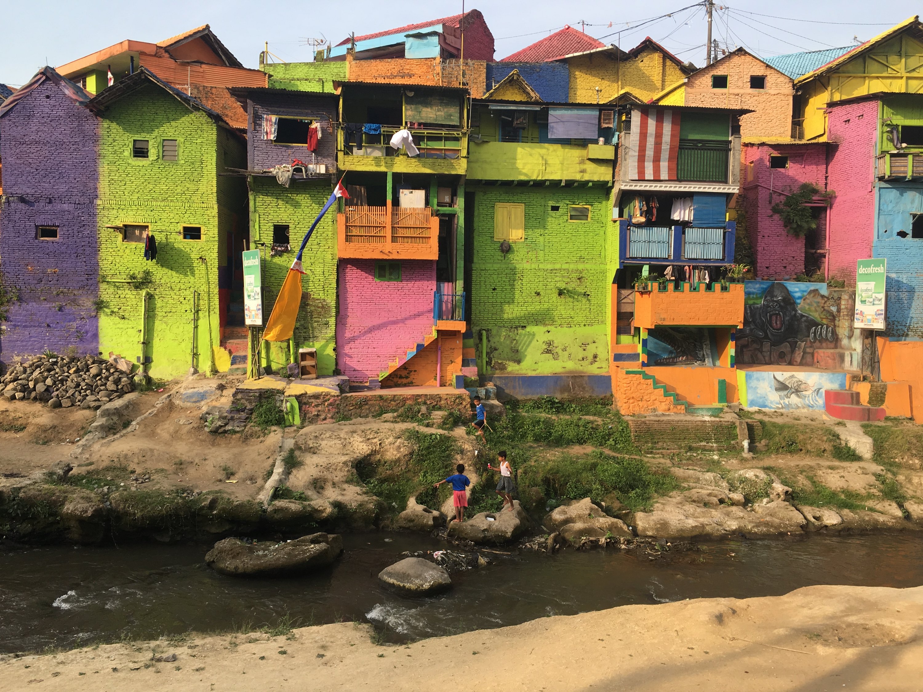 Right after the class on our first day in SMKN4 , our Unikama friends ,Vina and company fetch us from the School to gave us a tour around Malang. We rode to their motrcycle and I was shocked by how most people use motorcycle as their transportation and the road are mostly filled with motorcycles. Our first stop is Kampung Warna Warni Jodipan or the Village of Color. The roof of each houses were painted in different colors.And the walls were filled with artworks of the people there. Its a haven of artworks and color that showcase the creativity of the Arema (People of Malang).