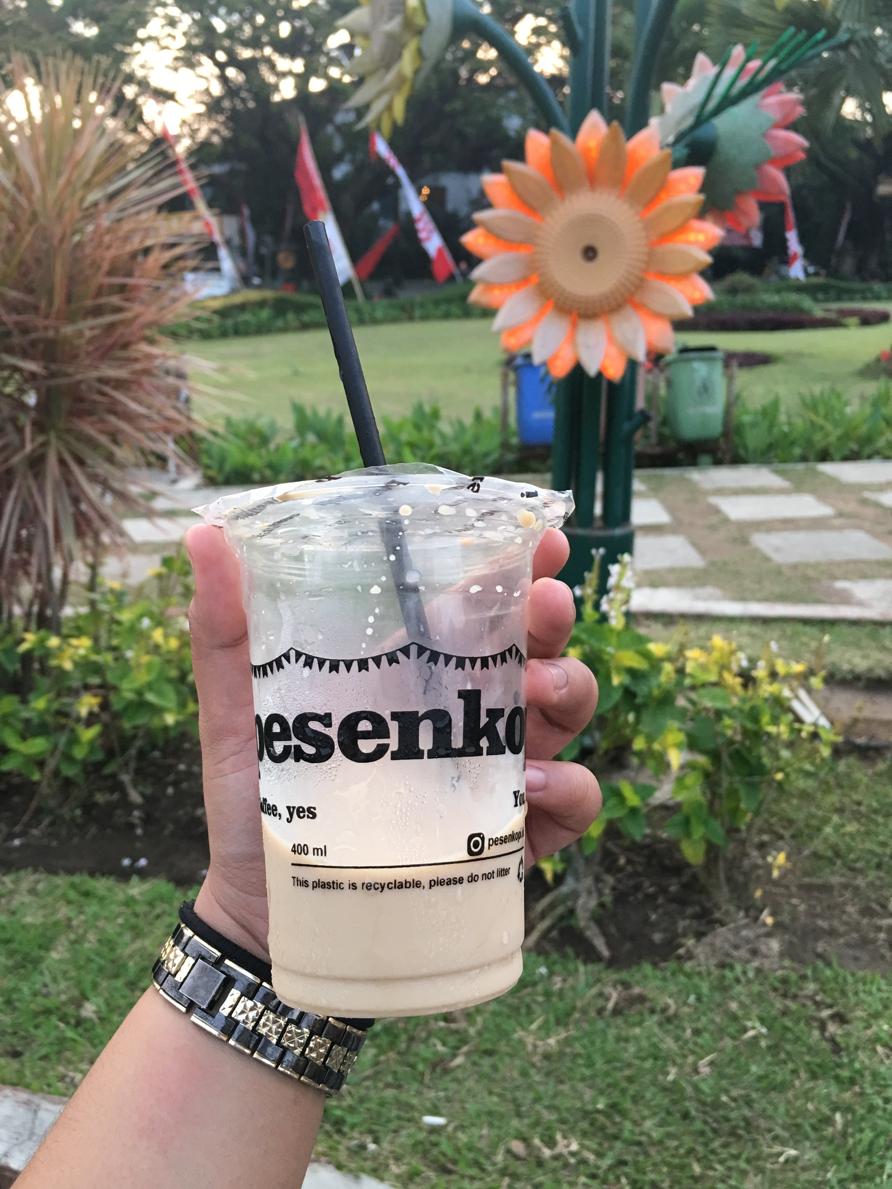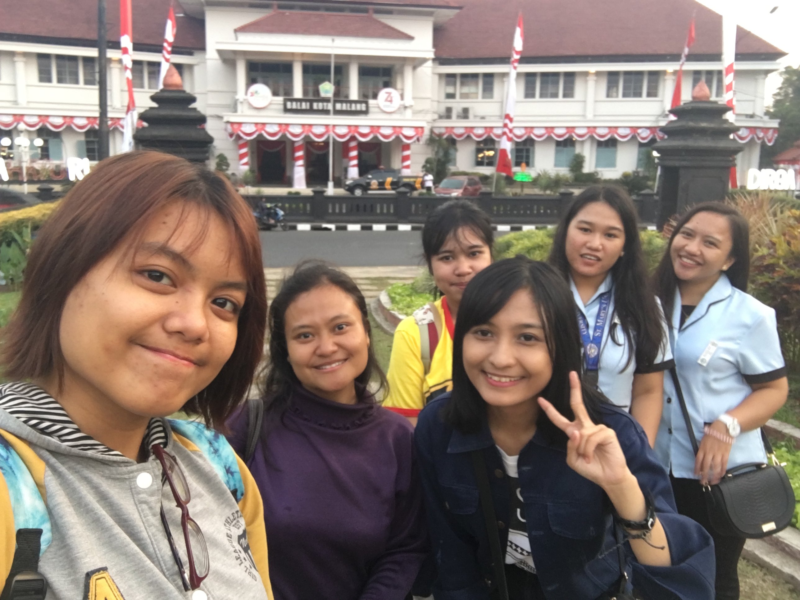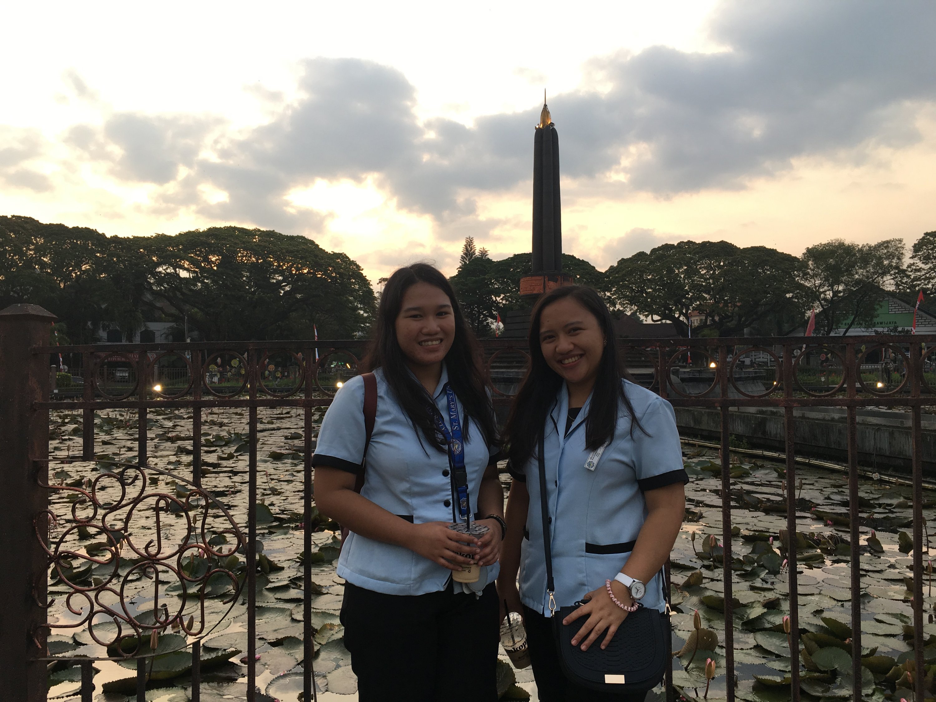 After Jodipan, we visited Tugu. We strolled around the park while drinking coffee and taking pictures around. As we were walking ,we are all exchanging facts about each other. I found out that I share the same hobby like them. We all like kpop and anime . We talked about random things aboit each other. Since it is almost time for dinner, we went to a chinese restaurant near UNIKAMA. I tried nasi goreng which is a fried rice and I love it. While eating our dinner, Ratih told ua that she wanted us to visit Selecta and we said yes. So we planned when we will go Selecta and how we will go to Selecta and after dinner, they accompanied us to our dorm and we said goodbye.