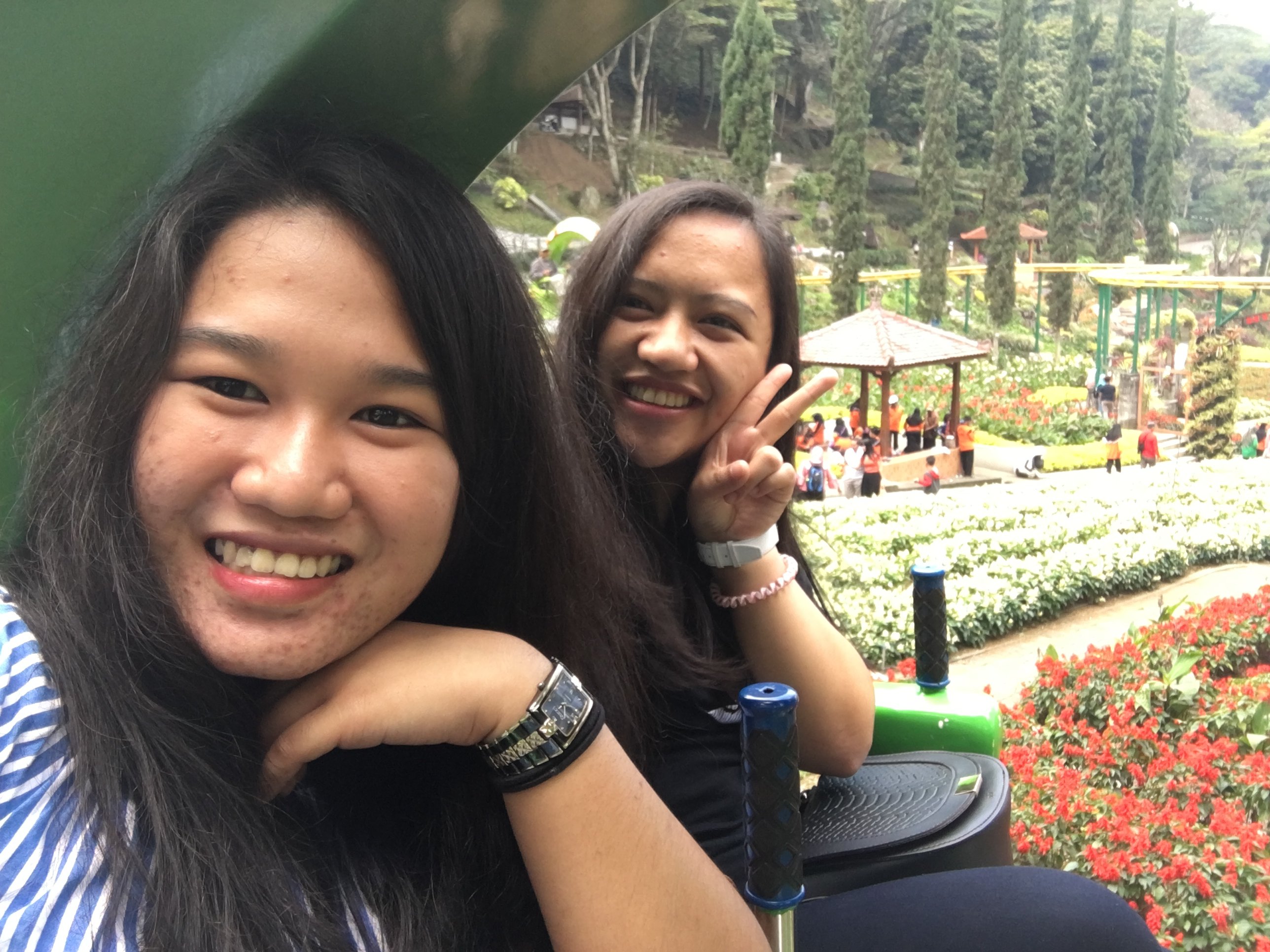 Ratih, Vina and Nimas fetch us Saturday Morning in Rusunawa to go to Selecta as planned. We used Ratih’s boyfriend’s car to go to Batu, which is the hometown of Ratih. It took us 2 hours to go to Selecta. During the ride, Ratih gave us snacks to eat on the road. I forgot what it is called but it was awesome and delicious. She also gave us cakes and milk. Ratih’s mom was there to pick see us. We took photos with her at the entrance of Selecta. She told is that her family is one of the co-owner of Selecta and told us the history of it. I learned that it was built by the Dutch then they renovated it and opened it to the public. Since it was lunch time when we get there, Ratih’s mom treated us lunch and excused herself to go because she had something to do. But before leaving she told us to enjoy ourself and send us her regards. Ratih’s mom is very kind.