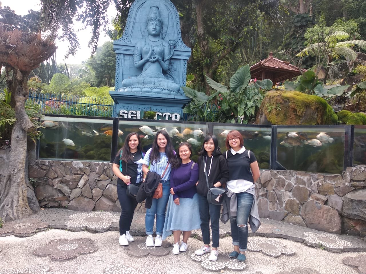 There are garden full of colorful flowers, aquarium, pool, zipline, sky bike and there’s also a 4d Cinema. You cam also do horse-back riding. My favorite would be the rides. Although Im afraid of heigth I mustured my courage to ride the Sky Bike and the Vikings.It is a wonderful experience. We strolled around Selecta and when we felt hungry,we went back to rhe restaurant and eat. The food was awesome. Before we go back to our place, we asked the group if we can take a group picture and print it so we have a rembrebrance. Ratih talked to them and gave us the picture. We wanted to pay for it but Ratih said its okay so I thanked her for all the things she did for us. I will never forget it. On our way home, we dropped by a souvenier shop in Batu. We boutgh things to bring back to Philippines and some souveniers to give to our teachers here.