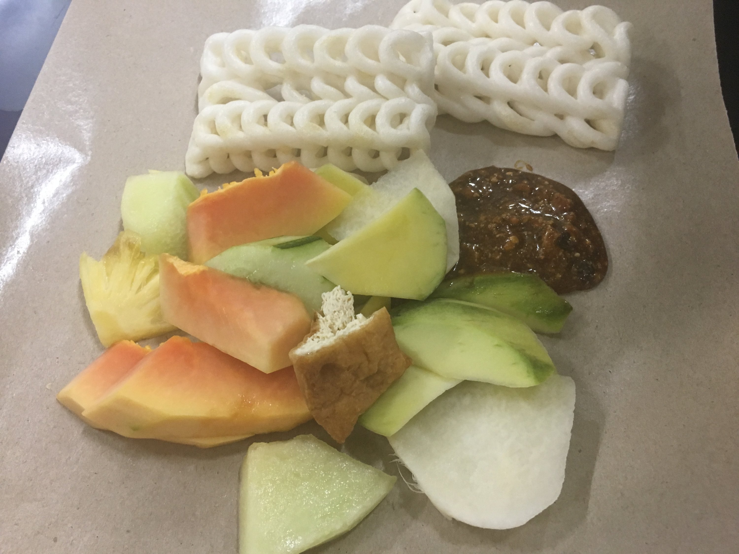 Rojak (Malay spelling) or Rujak (Indonesian spelling) is a traditional fruit and vegetable salad dish from Southeast Asia, commonly found in Indonesia, Malaysia and Singapore.Other than referring to this fruit salad dish, the term rojak also means “mixture” or “eclectic mix” in colloquial Malay.