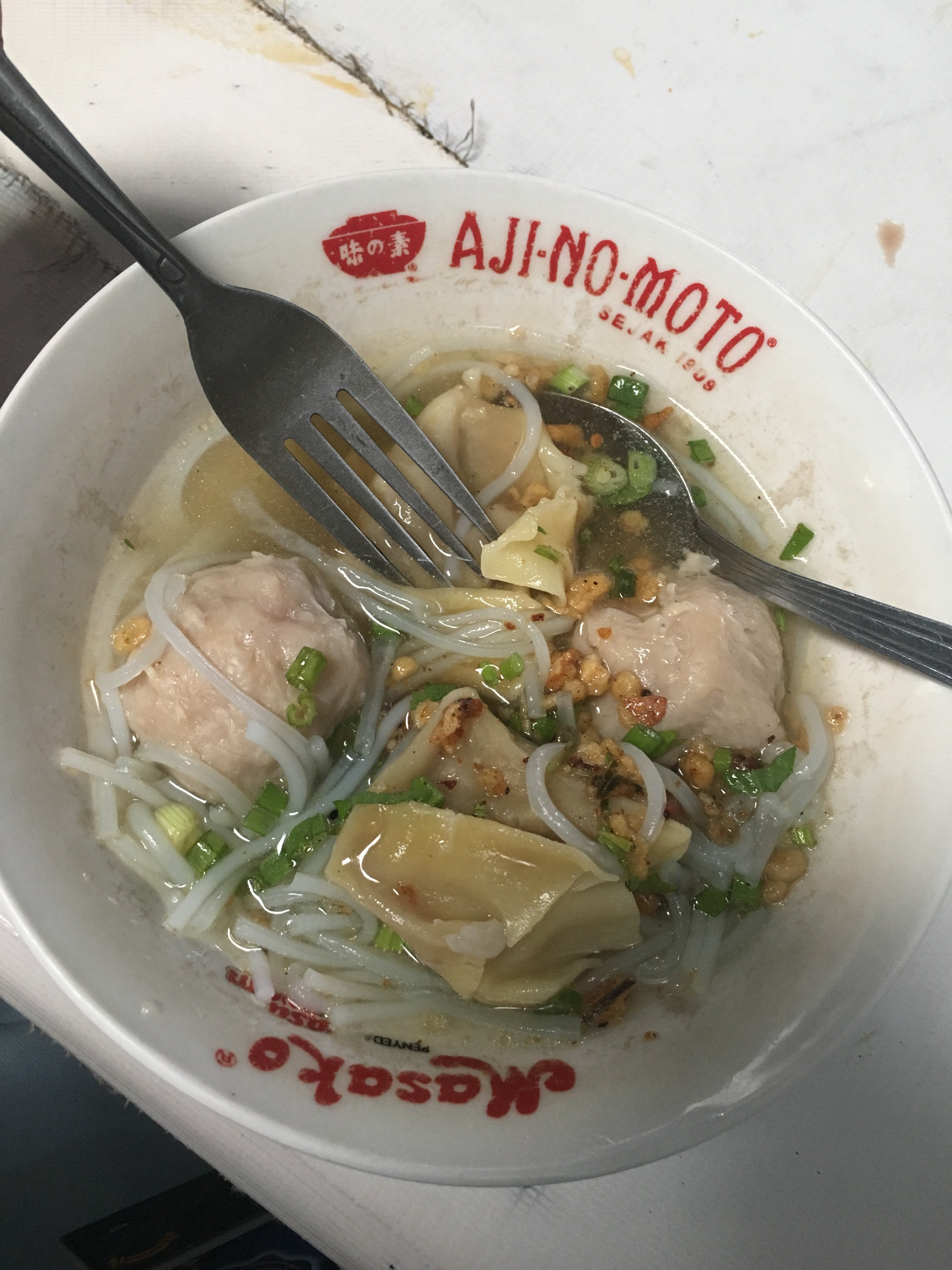 Bakso or baso is an Indonesian meatball,or a meat paste made from beef surimi. Its texture is similar to the Chinese beef ball, fish ball, or pork ball. The word bakso may refer to a single meatball or the complete dish of meatball soup. Mie bakso refers to bakso served with yellow noodles and rice vermicelli, while bakso kuah refers to bakso soup served without noodles.