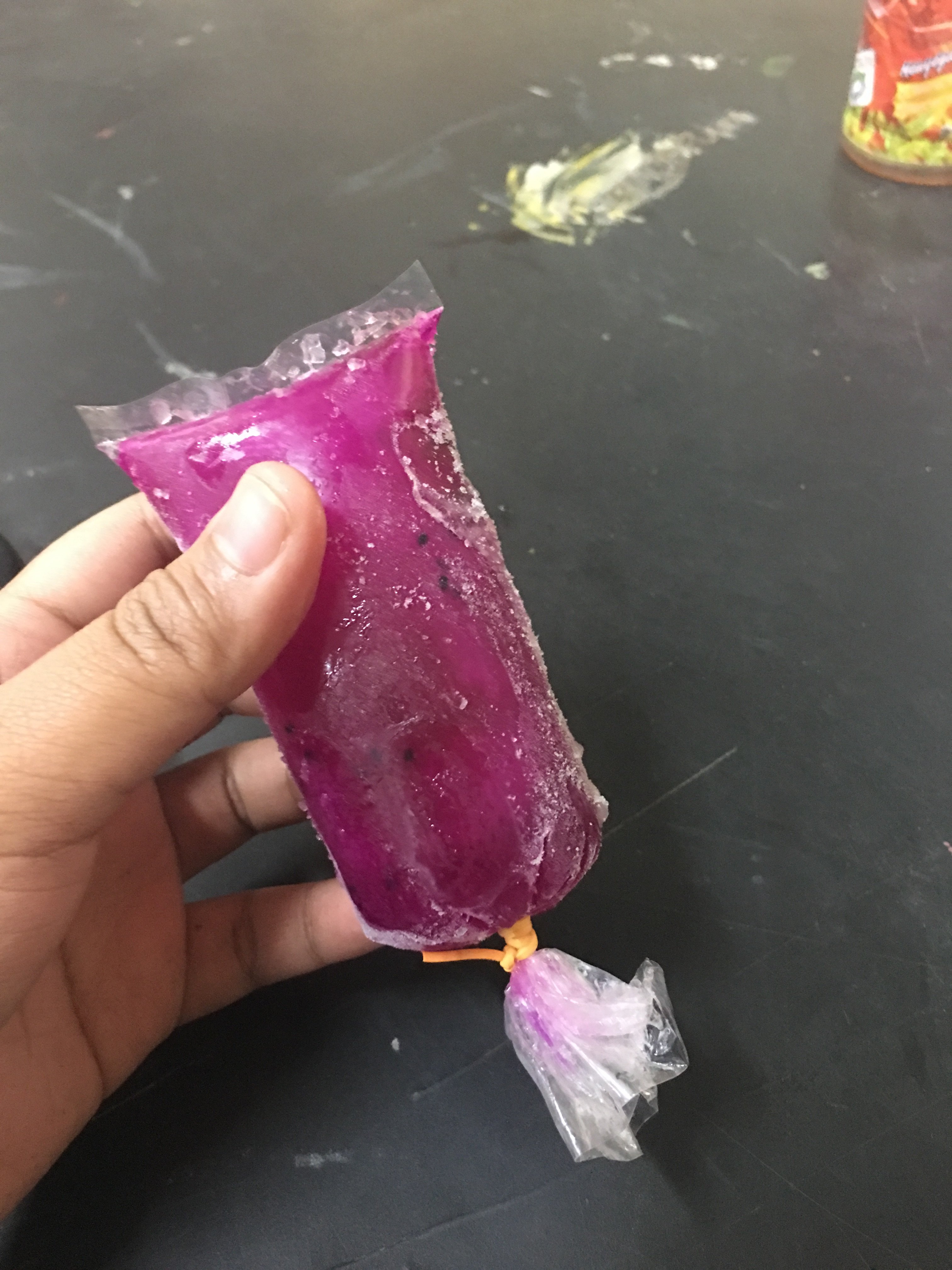 Ice candy made out from any fruit juice ,milk, or chocolate. One of the new English Intern bougth this one for us to taste. This ice candy is made out of real dragon fruit.