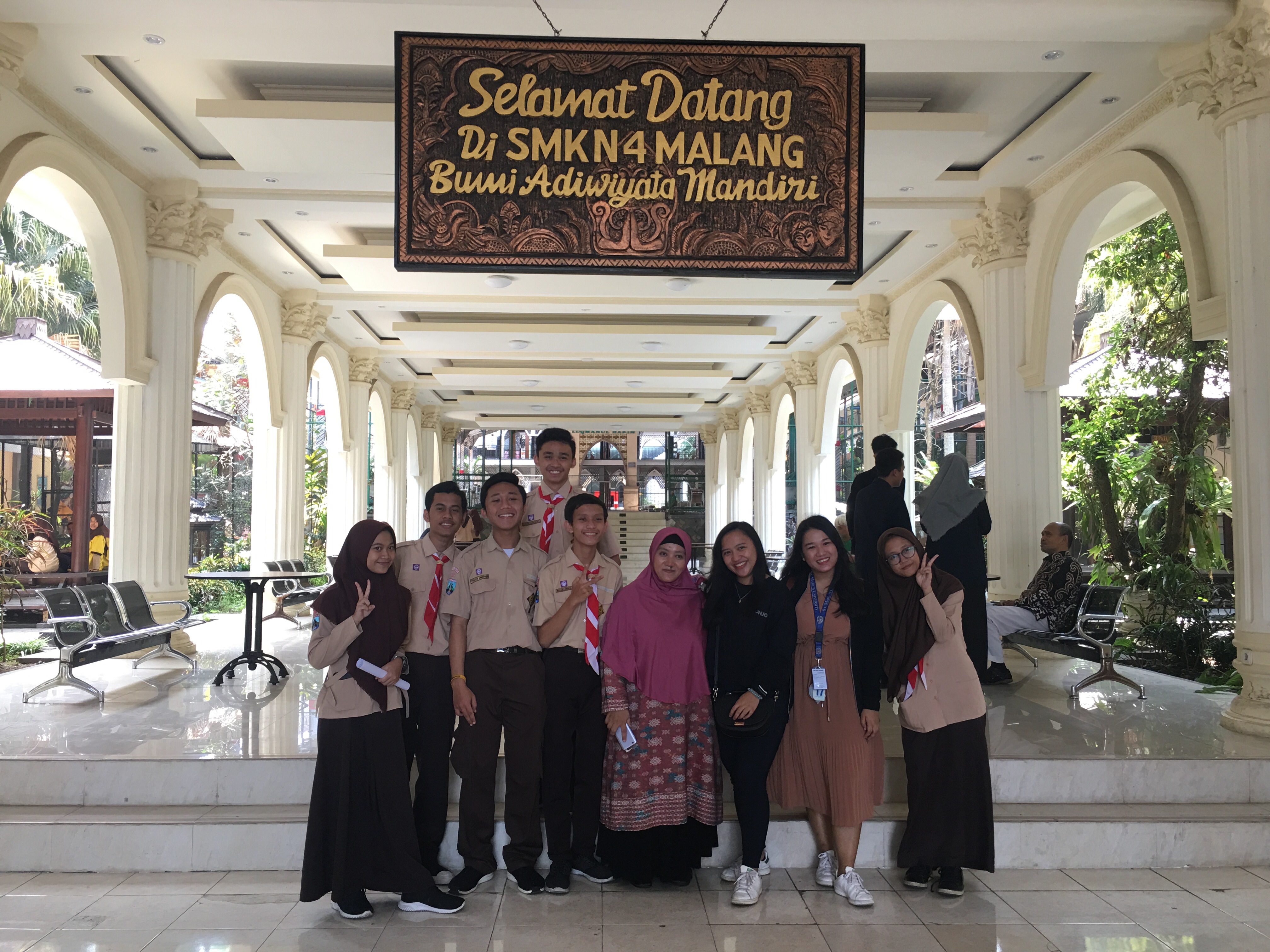September 19 is supposed to be our last in SMKN 4 but I still went there the next day to officially bid goodbye to my students, friends and teachers. I met up with my students and took some photos here and there. We also took one last look at our favorite hangout place in the school which is the cafeteria and the library. We also bid our goodbye to our fellow interns. We also took photos with the whole Bahasa Ingris Teachers. I also took the opportunity to meet my PD A class, who are sulking because I only taught them 2times instead of 3 like my other classes. I gave them my simple farewell gifts and a personal letter. I went to their class with Ma’am Rosita which is supposed to be my schedule for my last teaching there. Of course I would love to teach again that afternoon but Ma’am Rosita promised them to watch a movie. We did a movie marathon watching Men in Black 3. I was feeling sad the whole time knowing that it is our last meeting with each other and the time to say goodbye is approaching. With 15 more minutes left, Maam Rosita gave me the opportunity to give the gifts and my last word to them. I gave them a short motivational speech and took some photos. After class, we went to Ruang Guru to bid goodbye to the Headmaster and Principal. I said my appreciation to them for letting us teach in their school and talked about our experiences. He told us to forget the bad things that happen and remember only the good ones but I told him that Everything that happened, be it good or bad is something that I can never forget because the bad things taught me life lessons and I learned from it. My tears are about to burst that time but I forced myself not to cry infront of them. After our small talk with the Headmaster and Principal, we then stayed at Maam Rosita”s table. When the time comes that we have to leave , I started bawling my eyes out crying. Ma’am Rosita and Ma’am Anis are about to cry bit she never let them. We hugged each other and said goodbye. I am still crying while walking to the gate. As we were waiting for our grad car ride to come, we saw Ma’am Rosita and told us to wait. She stayed with us until the car arrived with this sad look on her face and she is about to cry. I am still crying by the time the car arrived. She said goodbye and Im crying and by the time I closed the car’s door, I took one last glance at her and I saw her crying and that made me so sad that I started to sob inside the car. I can’t help bit cry because it is very hard to say goodbye especially that I built a strong attachment with them. They became my second family in Indonesia and she is our mom who always cares for is, motivates us when we are down and took care of us when we are sick. I will really them so much.